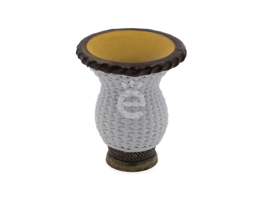 Díky svému typickému tvaru a širokému hrdlu je cuia ideální pro přípravu zeleného prachového maté, tzv. chimarrão. Ruční výroba, unikátní design, kombinace tradice a praktičnosti. Plastový “proutěný” plášť zajistí lepší odolnost nádoby, kovový podstavec je krásným designovým prvkem, který ji dodá kromě větší stability i originalitu a styl.