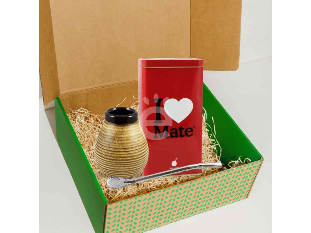 Tento dárkový box spojuje prémiové argentinské Kraus I Love Mate v plechové dóze, praktickou vroubkovanou keramickou kalabasu a spolehlivou kovovou bombillu. Jedna elegantní sada obsahuje vše, co potřebujete pro tradiční a pohodlné pití yerba maté – ideální jako dárek nebo startovní set.