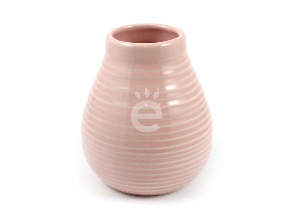Kalabasa keramická s glazurou - vroubkovaná, růžové barvy. Výhodou keramických kalabas je to, že se snadno udržují, neplesniví.