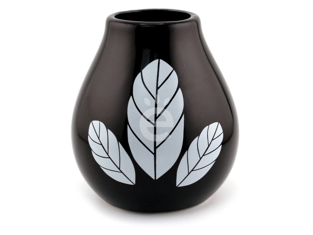 Keramická kalabasa s motivem tří lístků. Výhodou keramických kalabas je jejich praktičnost a snadná hygienická údržba, neplesniví.