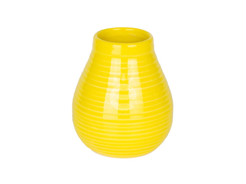 Kalabasa keramická s glazurou - vroubkovaná, žluté barvy. Výhodou keramických kalabas je to, že se snadno udržují, neplesniví.