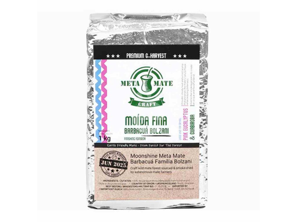 Meta Mate Craft Bolzani G-Harvest je prémiové brazilské chimarrão z oblasti Rio Grande do Sul, ale není to „plantážová“ yerba v běžném smyslu. Lístky se sbírají ručně v divokém brazilském lese a zpracování probíhá řemeslně v rodinách s vícegenerační tradicí. Rodina Bolzani navíc sklízí v období úplňku – podle rytmu přírody a s důrazem na maximální kvalitu chuti a vůně.
