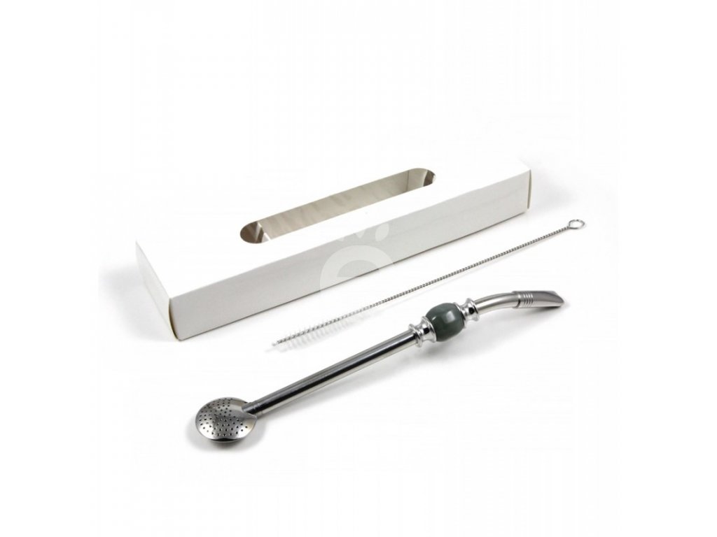 Bombilla s šedým kamenem o délce 21 cm z nerezové oceli + štěteček na čištění v krabičce.