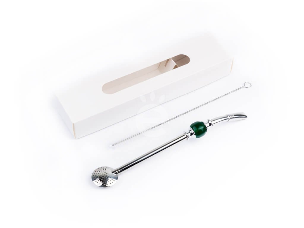 Bombilla s hnědožlutým kamenem o délce 21 cm z nerezové oceli + štěteček na čištění v krabičce.