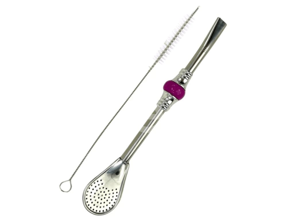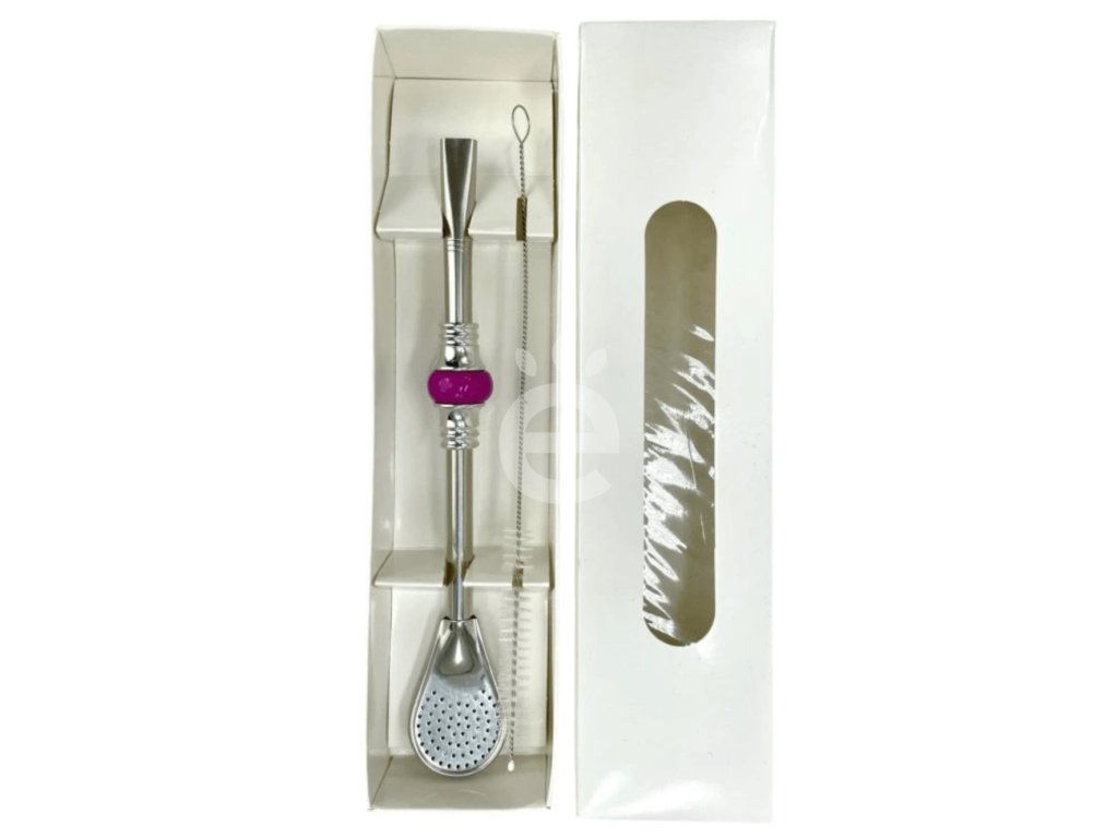 Univerzální nerezová bombilla zdobená barevným kamenem o délce 19 cm z nerezové oceli + štěteček na čištění v krabičce.