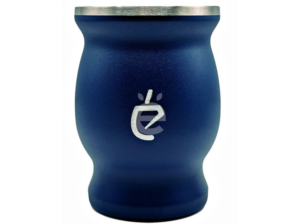Modrá kalabasa z nerezové oceli INOX o objemu 230 ml. Dvoustěnná nádobka uchová vodu déle teplou a zároveň si však nepopálíte ruce.