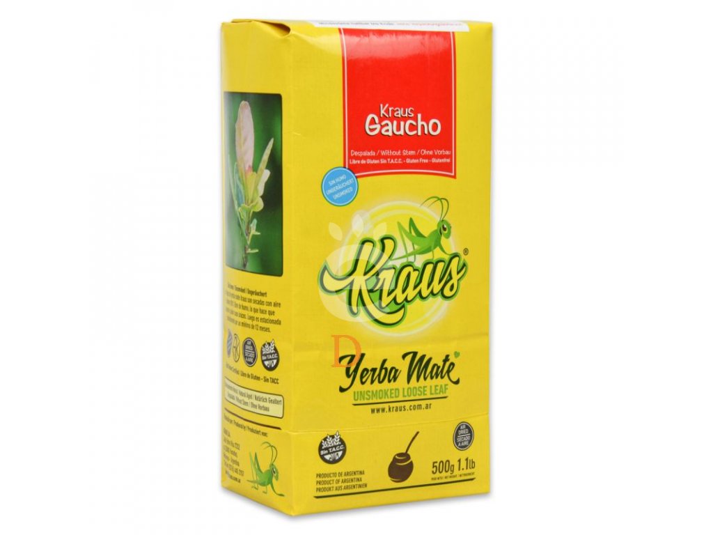 Kraus Gaucho Elaborada sin palo je yerba maté z ekologického a certifikovaného zemědělství. Toto maté obsahující pouze listy bez větviček (sin palo), je sušené bezdýmovou metodou a díky tomu vyniká jemnou chutí. Varianta Gaucho neobsahuje žádné přísady, a proto se od ostatních výrobků této značky liší o něco intenzivnější vůní.