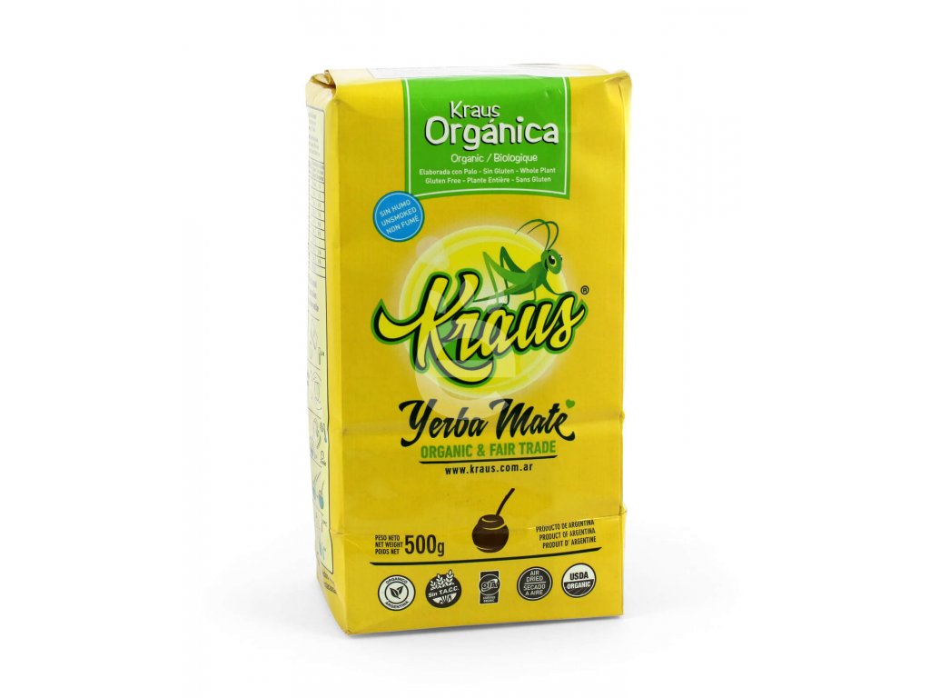 Kraus Organic je argentinské yerba maté. Díky inovativní bezdýmové technologii sušení se vyznačuje jemnou chutí a vůní bez kouřového aroma. Jedná se o yerbu s vyváženou hořkostí, jedinečnou chutí a svěží rostlinnou vůní. Sklizeň Kraus Organic je vždy limitovaná vzhledem k povaze pěstování bez ochranných prostředků a chemických hnojiv.