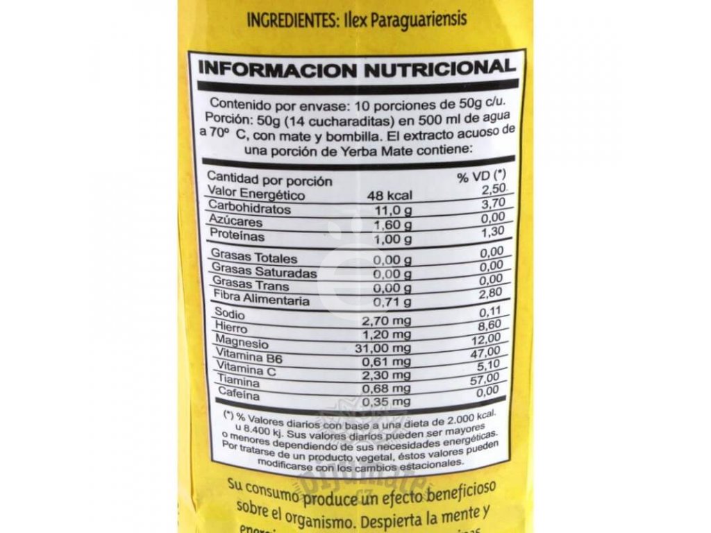 | Vlastnosti yerba maté: | S větvičkami (elaborada), Sušeno horkým vzduchem (bez kouře) |