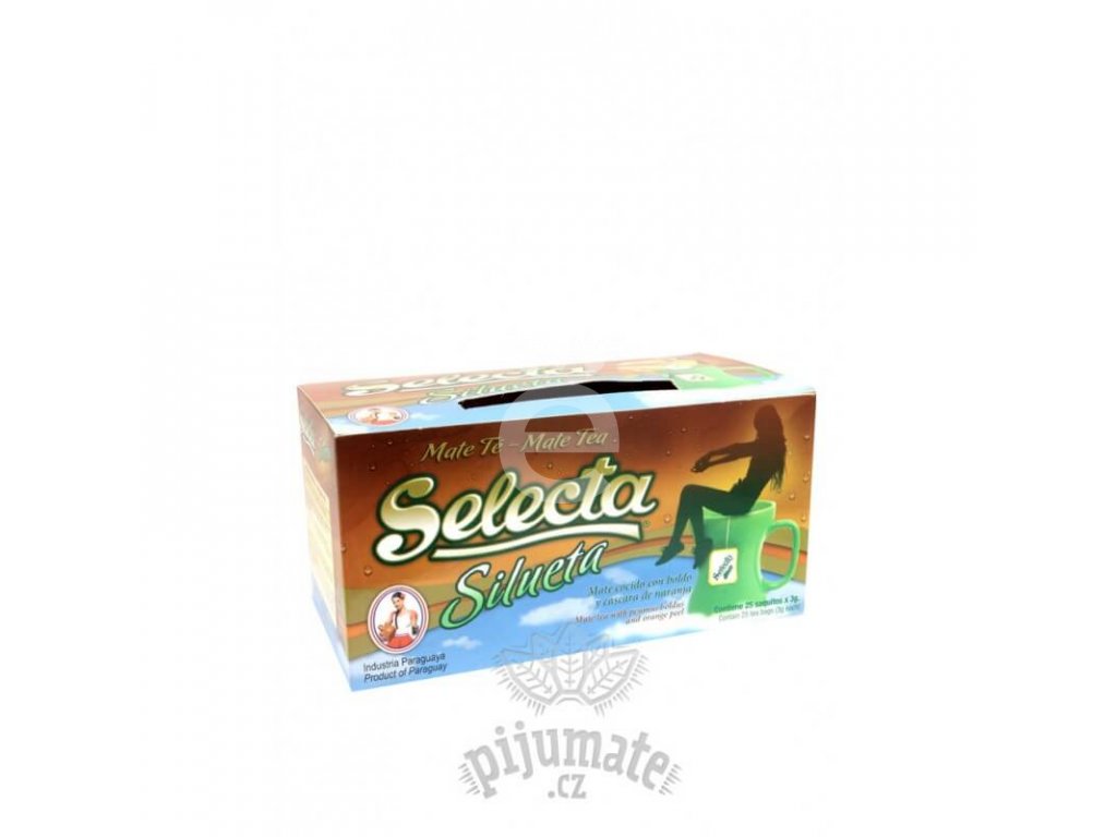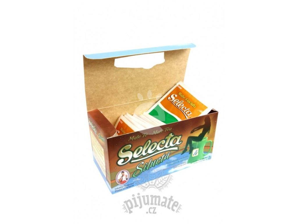 Selecta Silueta v praktických čajových sáčcích. Selecta Silueta kombinuje mletou yerbu, boldo, kyselé pomerančové a citronové esence.
